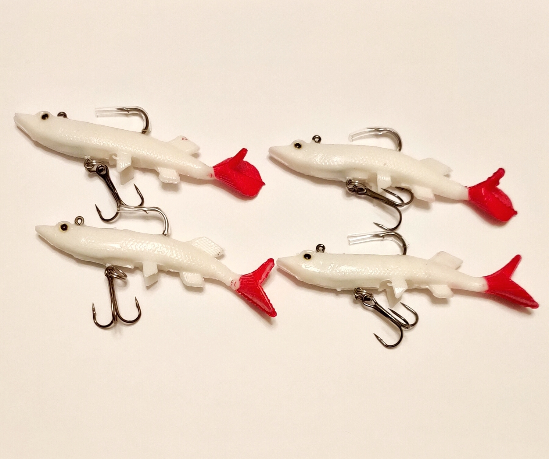 Приманка силиконовая с крючками Jin Tai 4 шт, длина 8 см , цвет Белый, вес 1 рыбки 10 гр.
